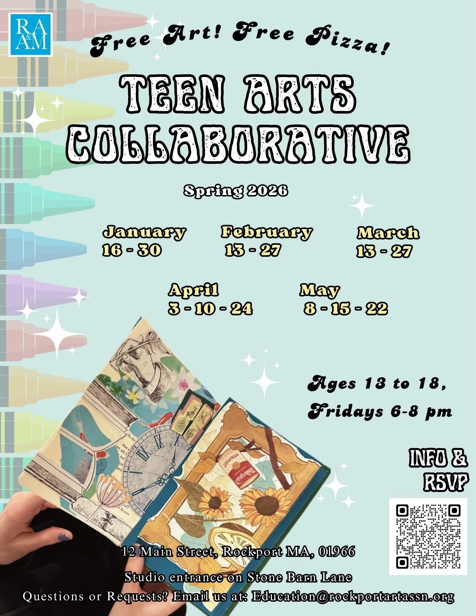 Join us for free art making and free pizza on select Fridays from 6 - 8 PM during the school year, open to ages 13 through 18.